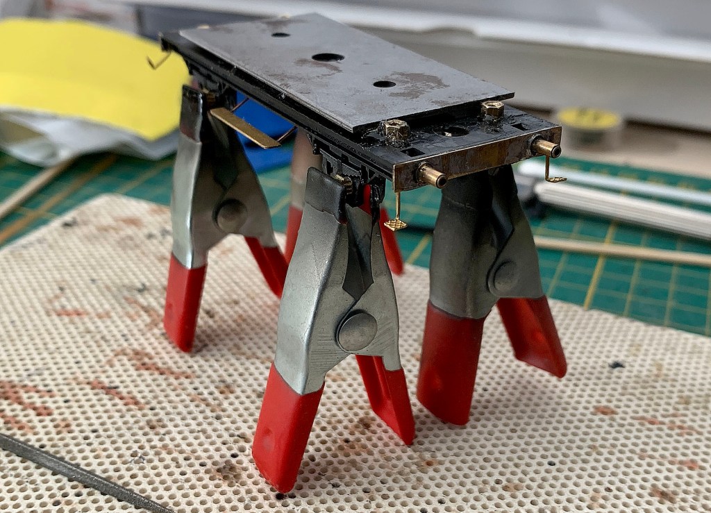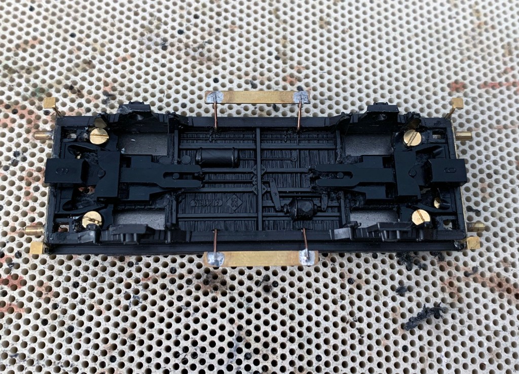 De FBW is op basis van een Roco onderstel met messing kap. Het onderstel met korte wielbasis wordt verkregen uit een oud kolenwagonnetje. Helaas zat hier nog geen kortkoppelmechaniek op. Daarom is dit achteraf nog geplaatst. Hiervoor is een retrofit mechaniek van Roco gebruikt (art. nr. 40343). De plastic buffers zijn vervangen voor messing (verende) exemplaren. De plastic bufferbalken zijn afgevijld waarna nieuwe messing bufferbalken met daarop de bufferhulzen vastgelijmd zijn.
