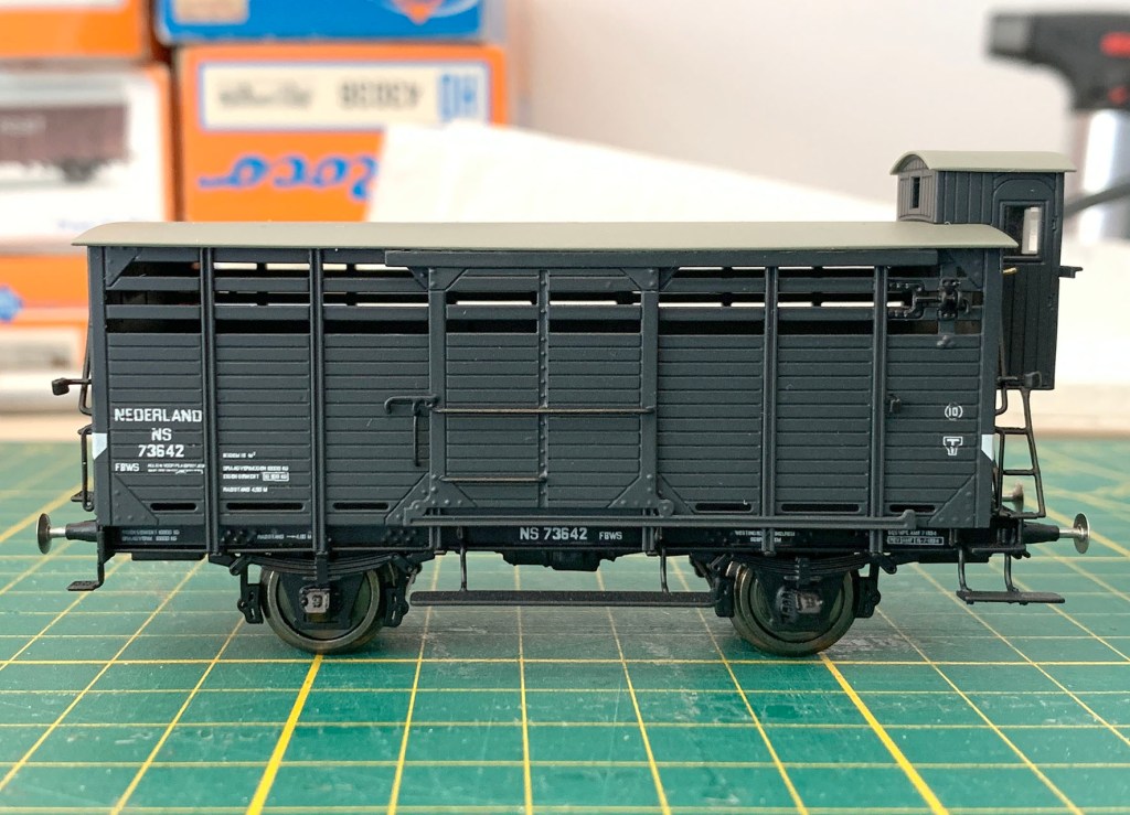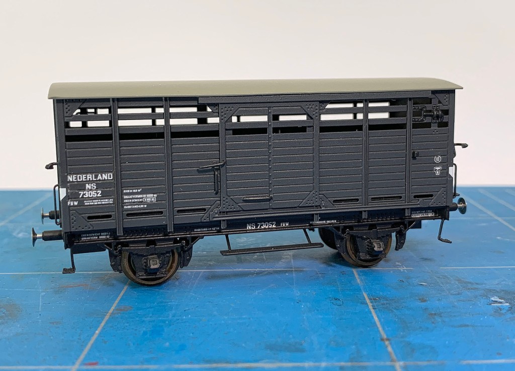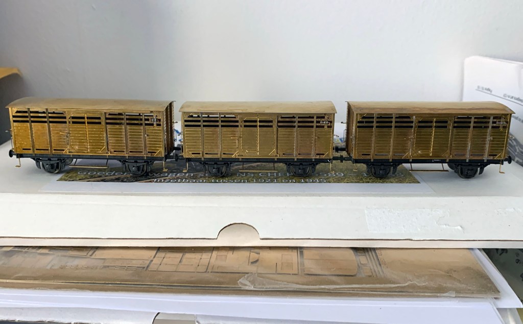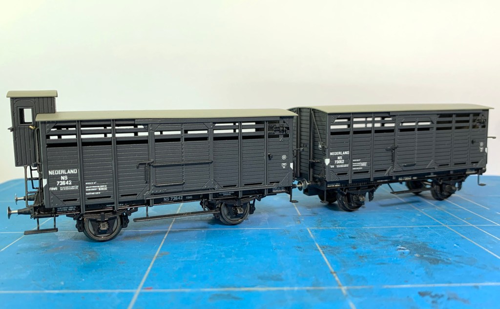 De drie overige wagens zijn grotendeels afgebouwd maar nog niet geschilderd. In de rubriek portfolio > Nederlandse goederenwagens, worden deze drie veewagens verder beschreven.
