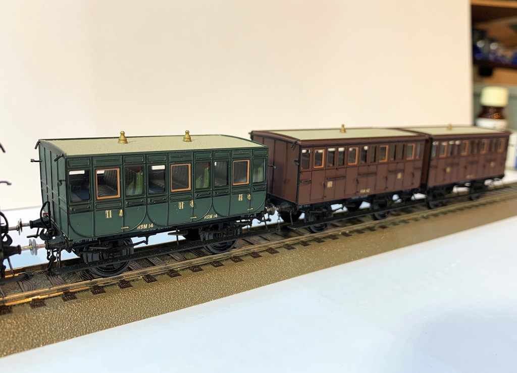 In 2024 en 2025 is in opdracht een set HSM rijtuigen gebouwd op basis van de kit van MKmodelbouwstudio’s. Hierbij is er extra aandacht besteed aan interieur en details op de wanden en het dak. De rijtuigen zijn gebouwd in hun vroegste vorm met olielampen en zonder remwerk. Het lijstwerk is zoveel mogelijk aangezet met zwart en op het dak is de bezande afwerking geïmiteerd. Alles conform de zeer informatieve schilderrichtlijnen van Maykel Kastelijn.