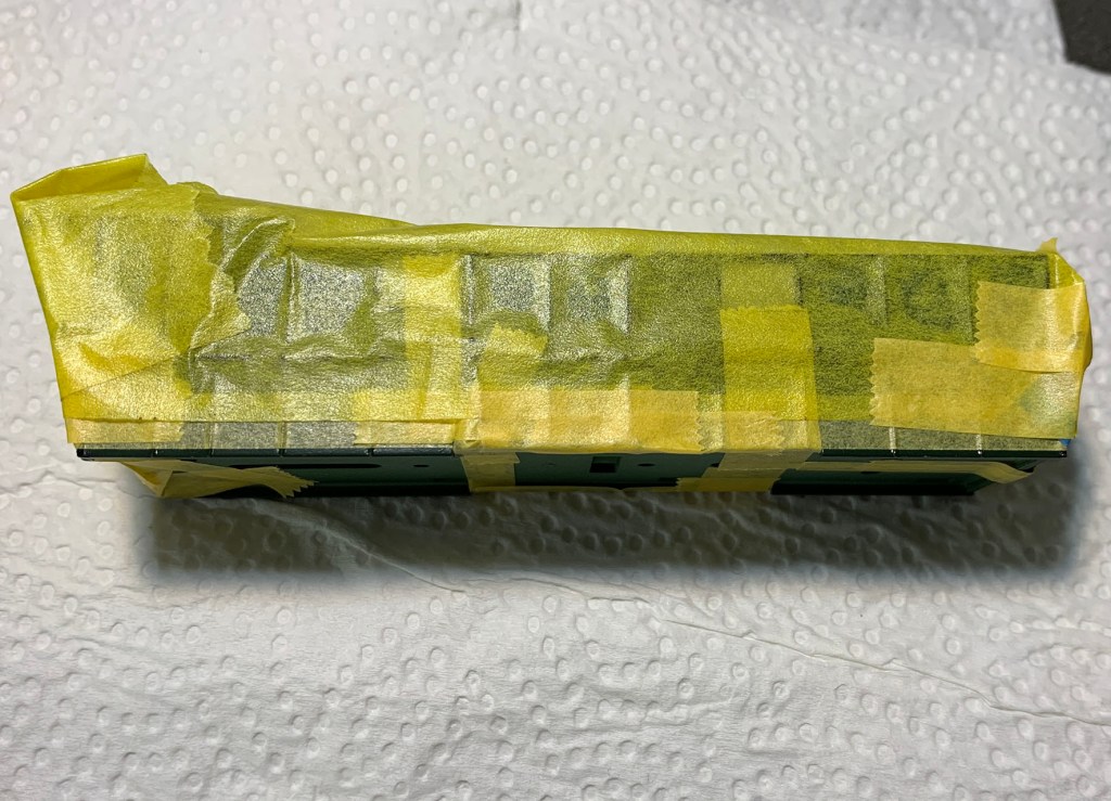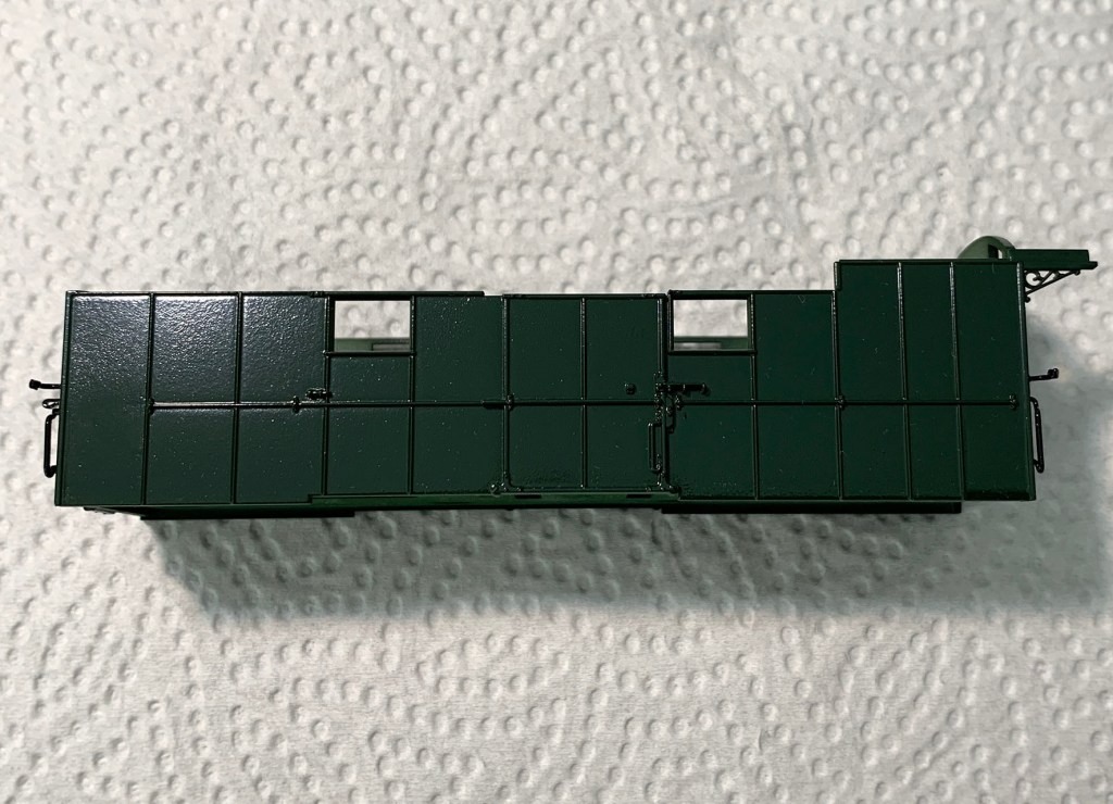 Op de kap zitten een aantal luikjes die ook weg moeten. In het begin hadden de rijtuigen gelijkend aan de Duitse rijtuigen diverse luiken in de zijwanden. Gaandeweg diverse constructiewijzigingen en revisies zijn deze weggehaald en is de wand glad geworden. Met een scherpe scalpel heb ik het reliëf weggesneden en weg geschraapt. Daarna heb ik de wanden glad geschuurd. De handrail is ook een aangegoten onderdeel. Het mooiste is om deze te vervangen voor een los stuk messing draad. Ik heb dit echter niet gedaan.
